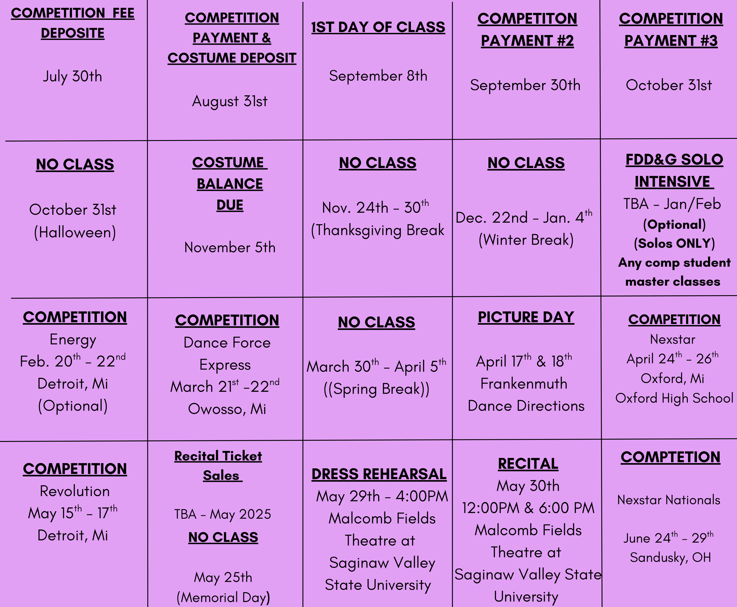 Hi! This page will serve as a catch-all for all important information, dates, reminders, etc. It will be updated regularly, so please check back often.