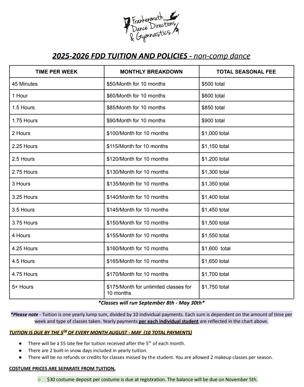 There is a $30 costume deposit per costume due at registration. The balance will be due on November 5th.