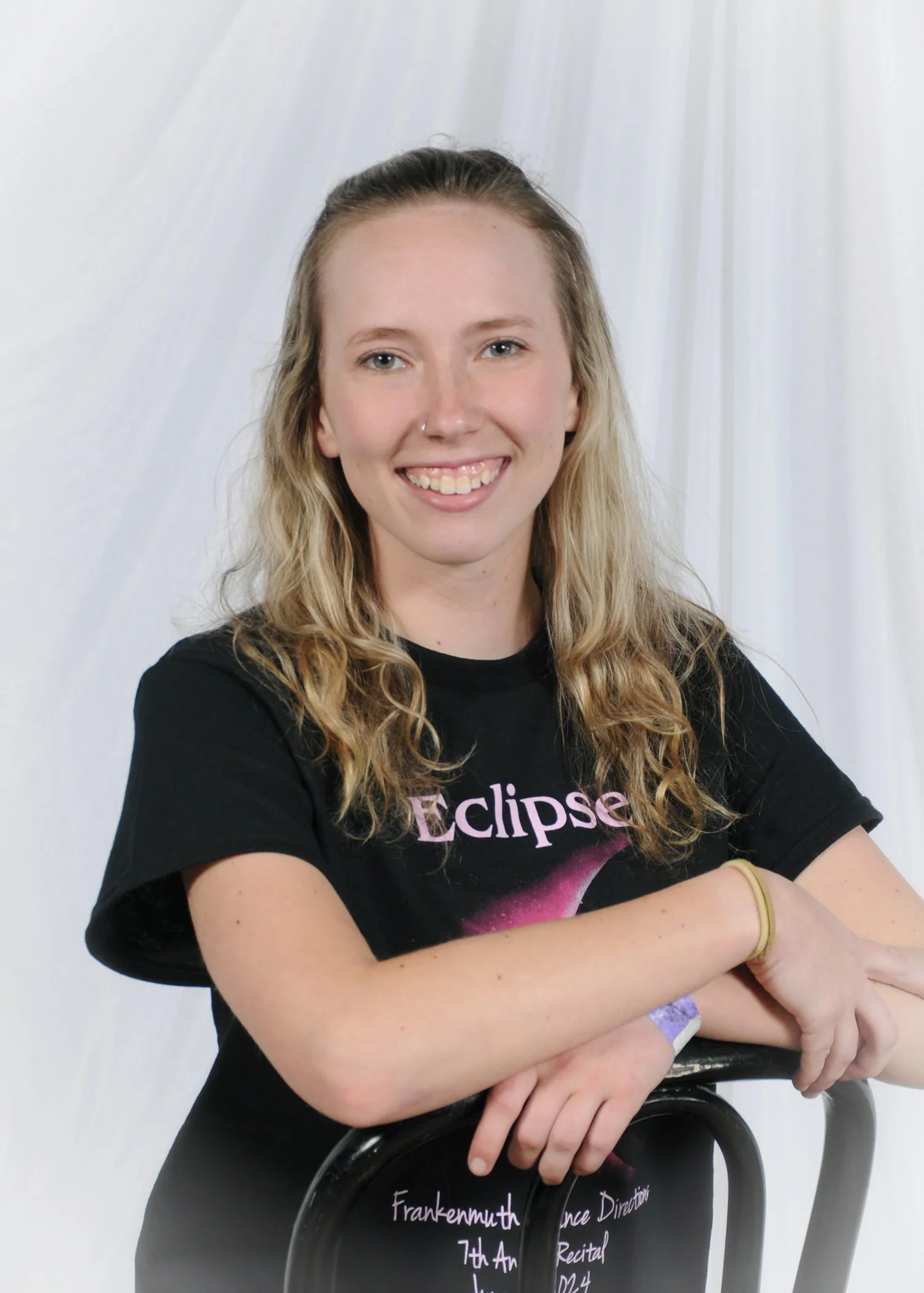 Hello, my name is Ashley Allen. I danced at the Flint School of Performing Arts for 16 years. I was taught many ballet techniques, such as Russian ballet, Russian Vaganova, Balanchine (American ballet), and the Cecchetti method (Italian ballet). I also studied modern dance techniques for seven years and pointe for eight years. Additionally, I studied with the Burklyn Ballet Theater and toured Europe with “The Stars of Tomorrow” in 2015 and 2019. I’ve received choreographic acceptance into Michigan Youth Arts in 2019, Burklyn Ballets Emerging Choreographic program in 2018, and Flint Youth Ballets Emerging Choreographer in 2018 and 2019. I love choreographing and expressing myself through movement. I want to share my love of ballet through teaching and inspiring the next generation with dance. Outside of dance, I figure skate, play music, and do photography. I am excited to get to work this coming season!